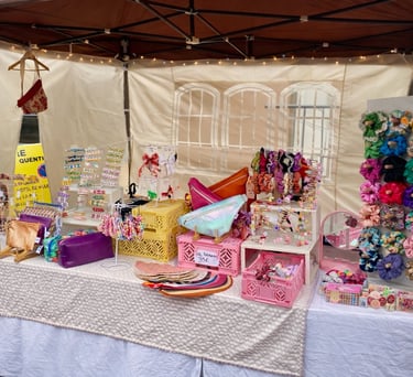 J’y conçois des accessoires faits main et des pièces uniques, dans un univers coloré, joyeux et assumé, pour celles et ceux qui aiment affirmer leur style.